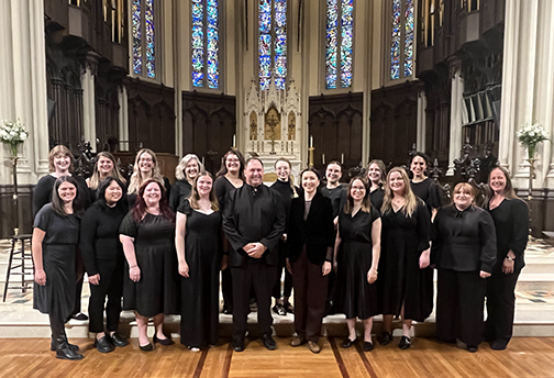 Dr. Brian Stevens, director of choral activities in the Department of Art, Music and Theater, hosted acclaimed Latvian composer Laura Jēkabsone for a week of rehearsals and workshops with his Western New York-based professional treble chamber choir, Vox Lusciniae, in preparation for their Oct. 4 concert.