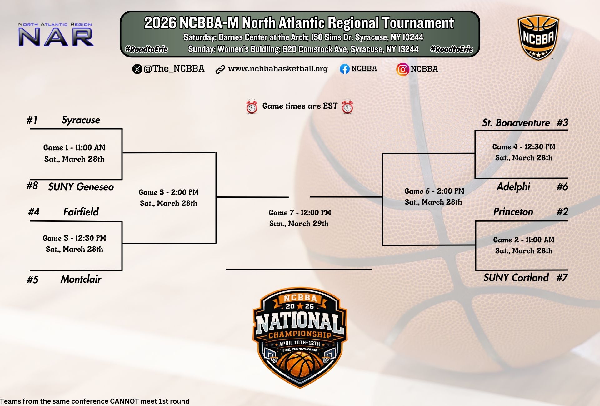 The No. 3 St. Bonaventure men open with No. 6 Adelphi at 12:30 p.m. Saturday in the eight-team regional. The winner will play at 2 p.m. vs. the winner of No. 2 Princeton vs. No. 7 Cortland. The title game is at noon Sunday. Syracuse is the top seed on the other side of the bracket.